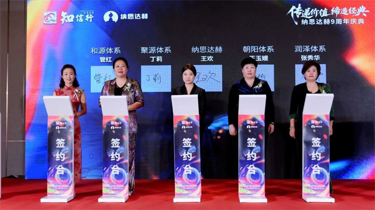 百年品牌的建立通常需要幾代人的奮斗,而我們知信行的品牌建設(shè)也同樣需要一批批知信行家人的共同努力。在本次納思達(dá)赫9周年慶典上,隆重舉行了知信行系統(tǒng)戰(zhàn)略聯(lián)盟體系領(lǐng)導(dǎo)人與納思達(dá)赫簽訂品牌服務(wù)協(xié)議的儀式。