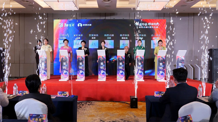 知信行系統(tǒng)創(chuàng)始人叢培濤先生、知信行系統(tǒng)市場運(yùn)營總裁唐云峰先生、知信行系統(tǒng)市場運(yùn)營副總裁姜萍女士、以及和治友德全球健康推廣大使李燕春女士、閆玲玲女士、張曉燕女士、穆怡帆女士等系統(tǒng)領(lǐng)導(dǎo)以及知信行系統(tǒng)戰(zhàn)略聯(lián)盟和部長團(tuán)的領(lǐng)導(dǎo)人們共同為納思達(dá)赫送上9周年的生日祝福。