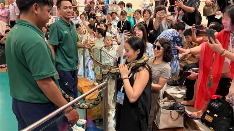 知信行的家人們來到了曼谷的蛇藥店。蛇園的經(jīng)歷讓家人們心率直線飆升——親眼目睹訓(xùn)蛇師與毒蛇的精彩表演,看著各類蛇在玻璃柜中悠然爬行,無不讓家人們嘆為觀止。
