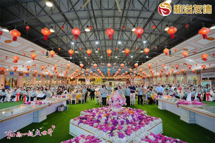 和治友德公司還邀請(qǐng)到泰國(guó)前副總理、中泰友好促進(jìn)會(huì)會(huì)長(zhǎng)功·塔帕朗西閣下親臨致辭,他穿著印有“中泰一家親”的服裝,全場(chǎng)家人無不為之沸騰。這不僅讓我們感受到公司的雄厚實(shí)力,更見證了公司的國(guó)際影響力。